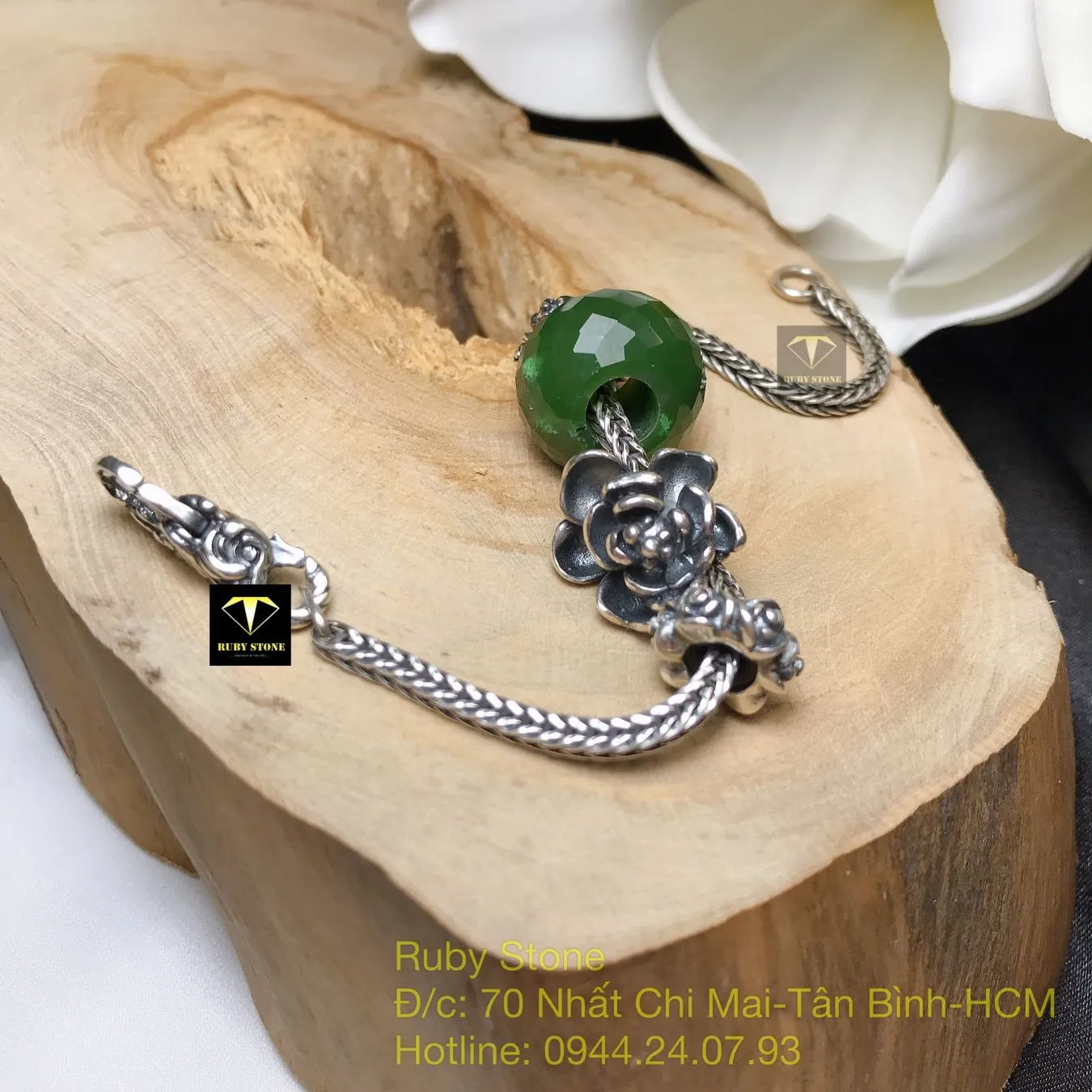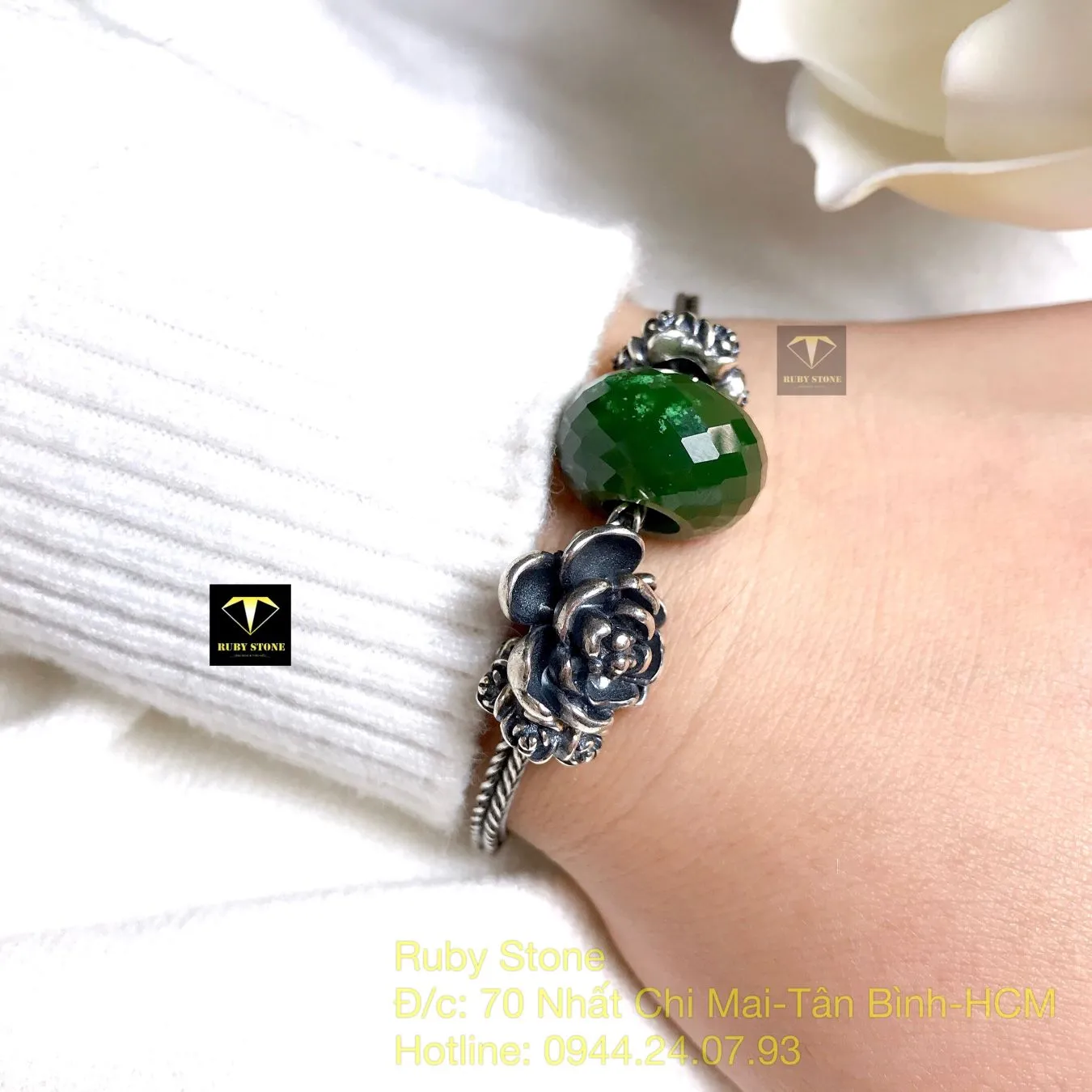 Vòng tay bạc mix charm ngọc bích Canada xanh lá mài giác